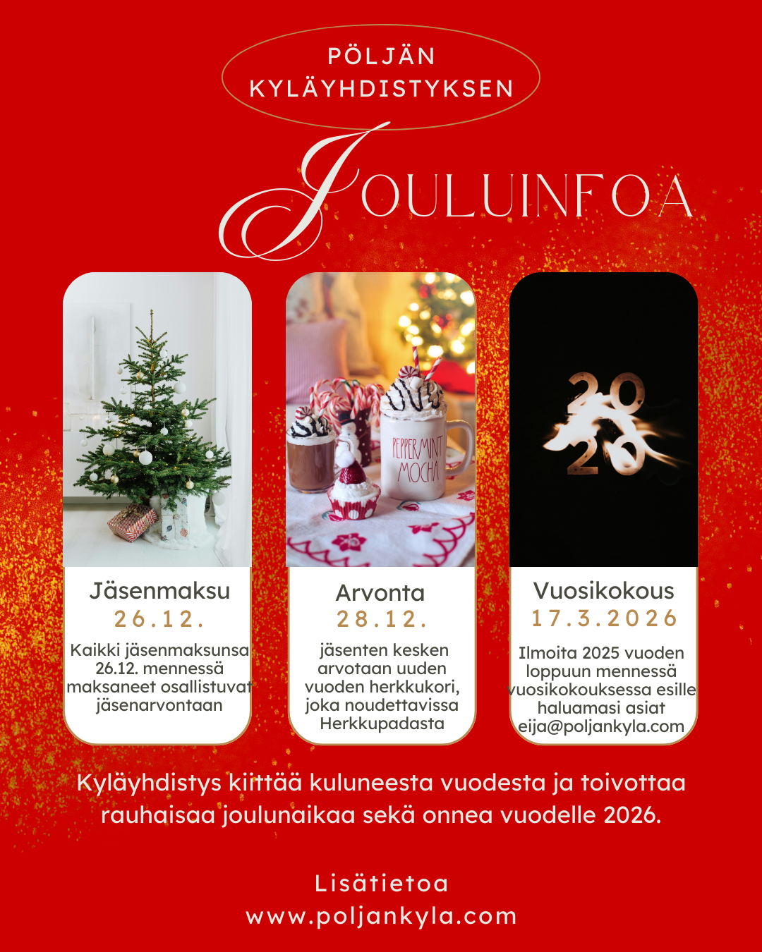 Haluatko olla jäsenemme? Ilmoita tietosi Eijalle tai Lauralle. Maksa jäsenmaksu tilille FI90 4786 0010 0536 37 / Pöljän Kyläyhdistys ry. Vuoden 2025 jäsenmaksut: - Pöljä perhe 10 € (=varsinainen…